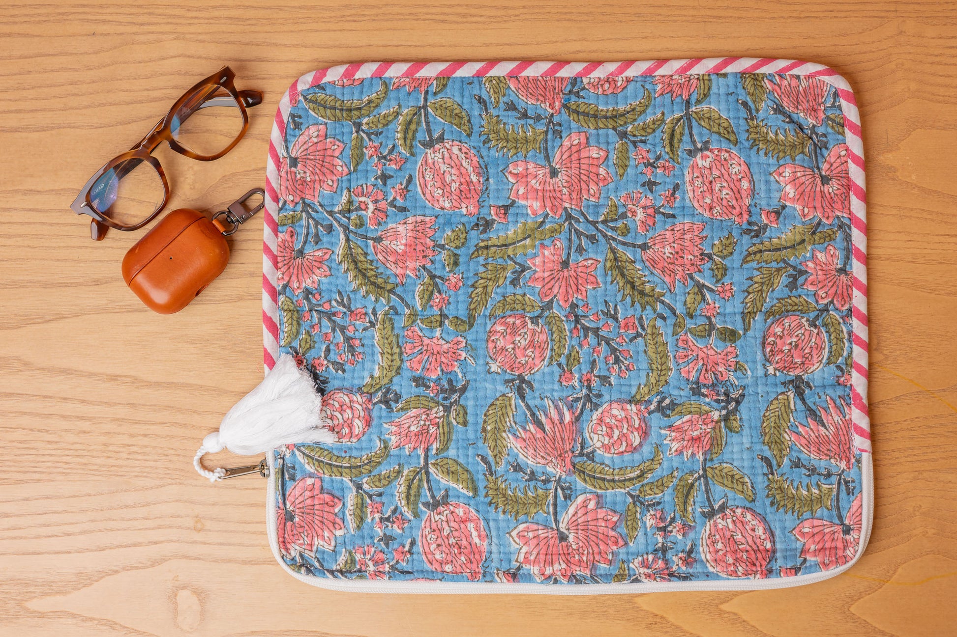 Gardenia Hand Block Print 100% Cotton Quilted Laptop Sleeve