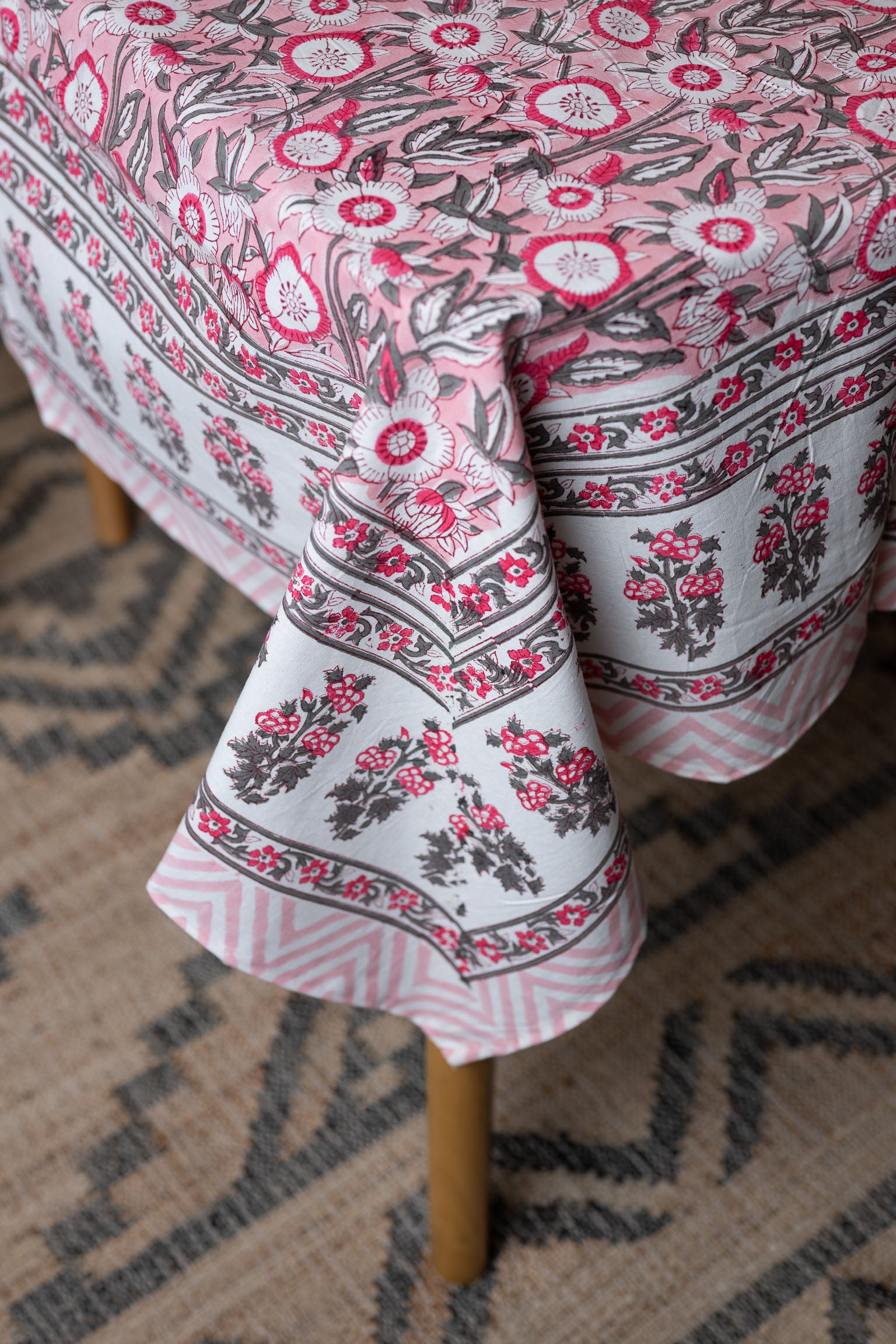Poppy 100% Cotton Handblock Printed Tablecloth 60" x 90"