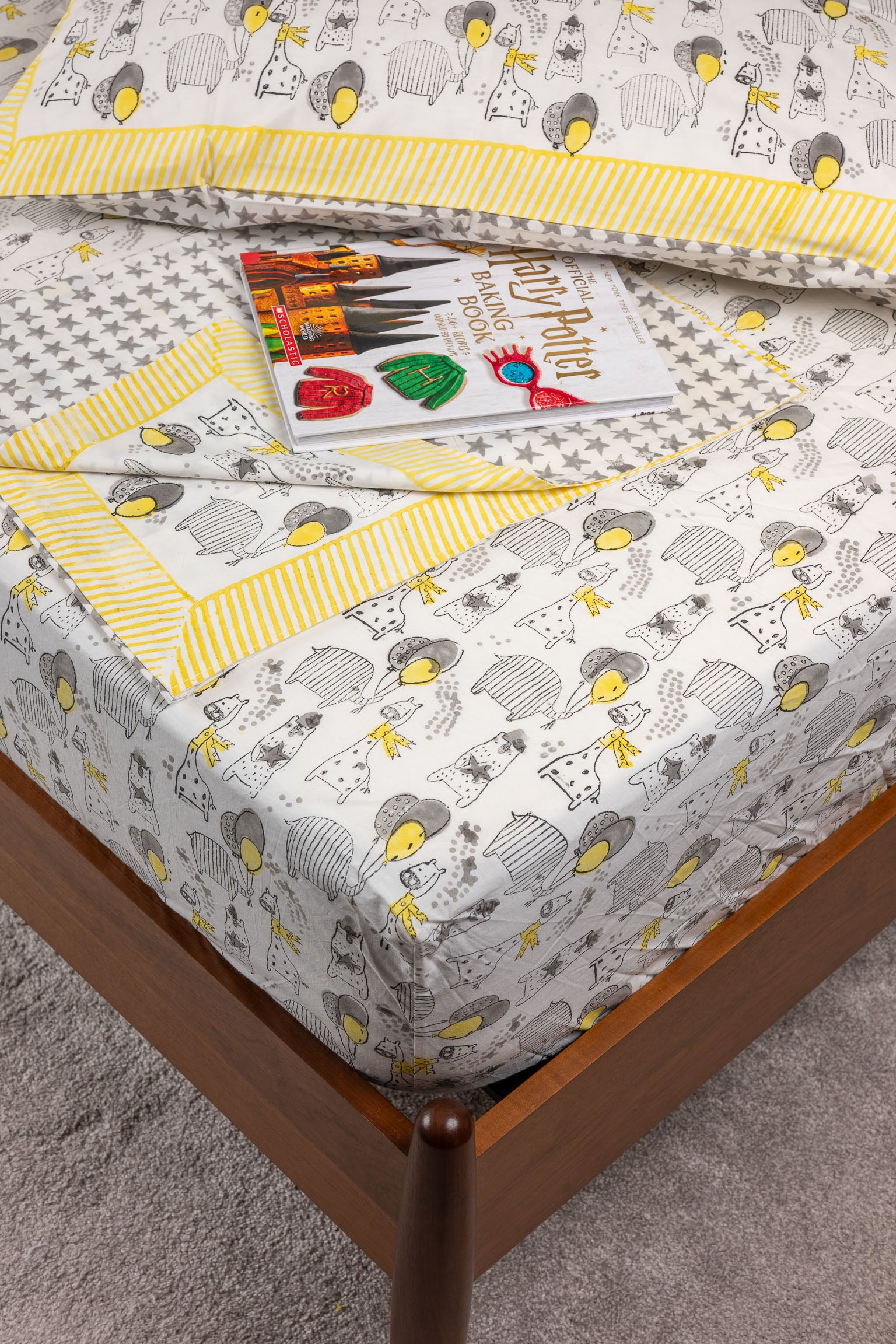 Safari Dreams 100% Cotton Handblock Printed Fitted sheet with Pillow covers