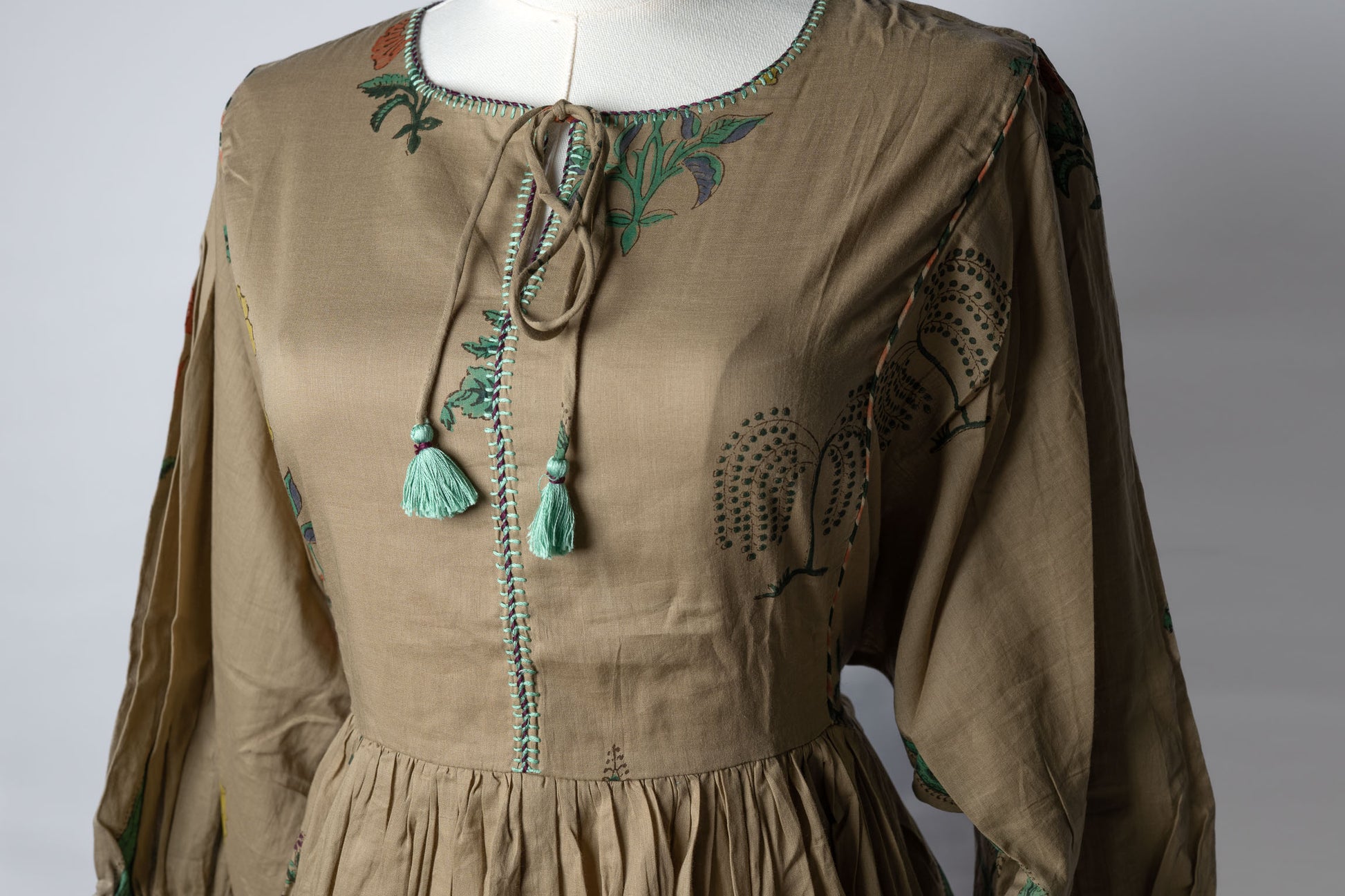 Elevate your everyday style with this hand block printed cotton dress, featuring a lively mix of paisley and floral patterns in rich tones of red, mustard, and green on a soft beige base. Crafted from breathable 100% cotton, it’s designed for all-day comfort and effortless charm.