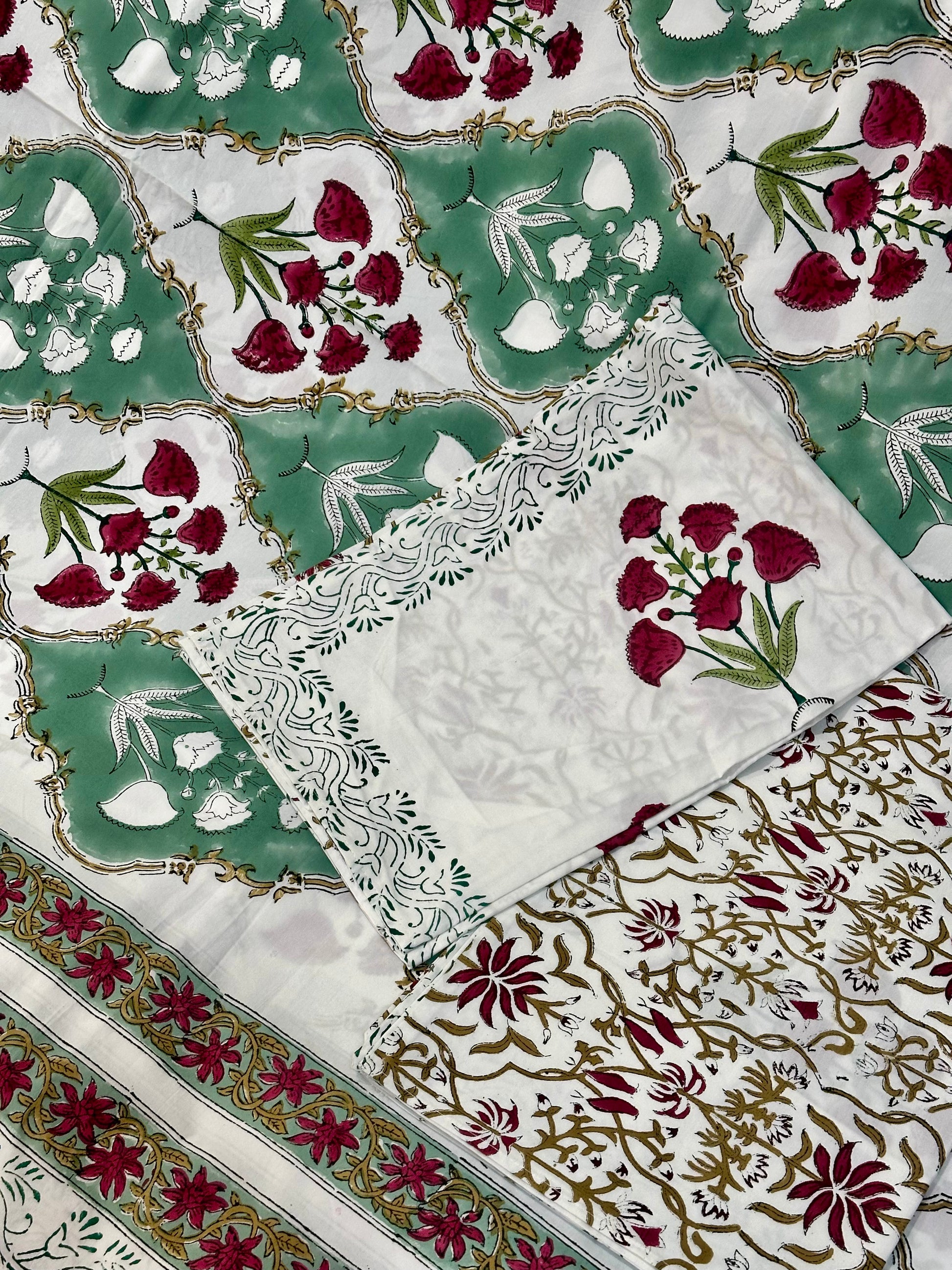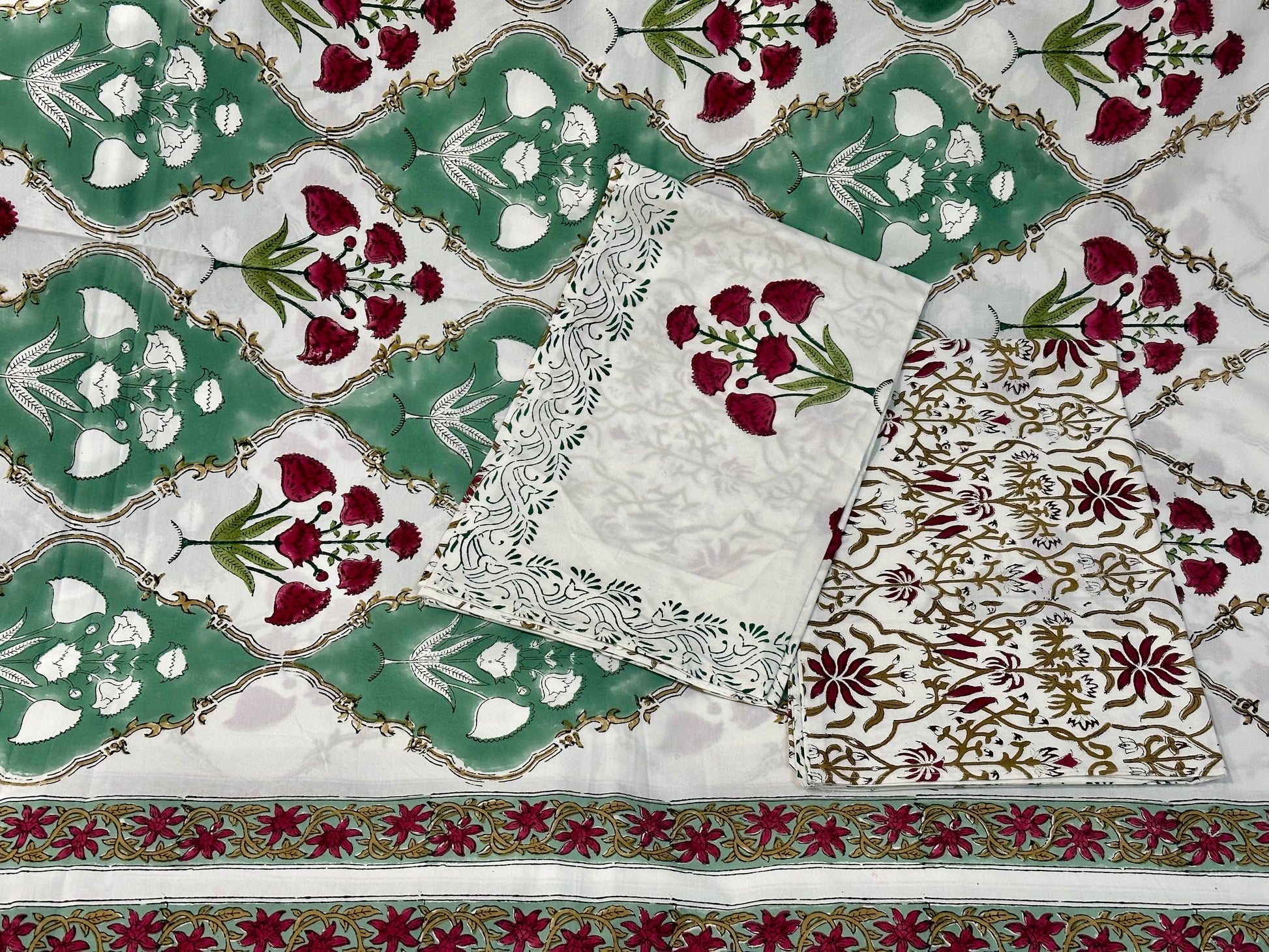 Vine Whisper 100% Cotton Handblock Printed Flat sheet with Pillow covers